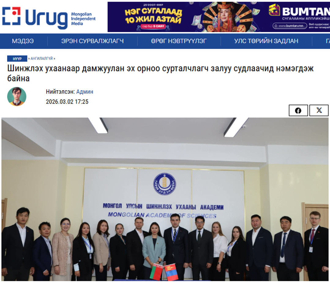 “Монголын Залуу Эрдэмтдийн Холбоо”-ны үйл ажиллагааг хувийн хэвшлийн байгууллагууд дэмжин хамтран ажиллаж ирсэн нь залуу судлаачдын хөгжилд бодит хувь нэмэр оруулж байна. Энэ хүрээнд 2026 оноос эхлэн Монос Групп-тай хамтран ажиллах, нийт 100 сая төгрөгийн санхүүгийн дэмжлэг үзүүлэх гэрээг байгууллаа. Уг дэмжлэг нь залуу судлаачдад чиглэсэн сургалт, судалгааны төсөл, эрдэм шинжилгээний хурал, чуулганыг зохион байгуулахад чухал түлхэц болж байгааг онцлон тэмдэглэв.