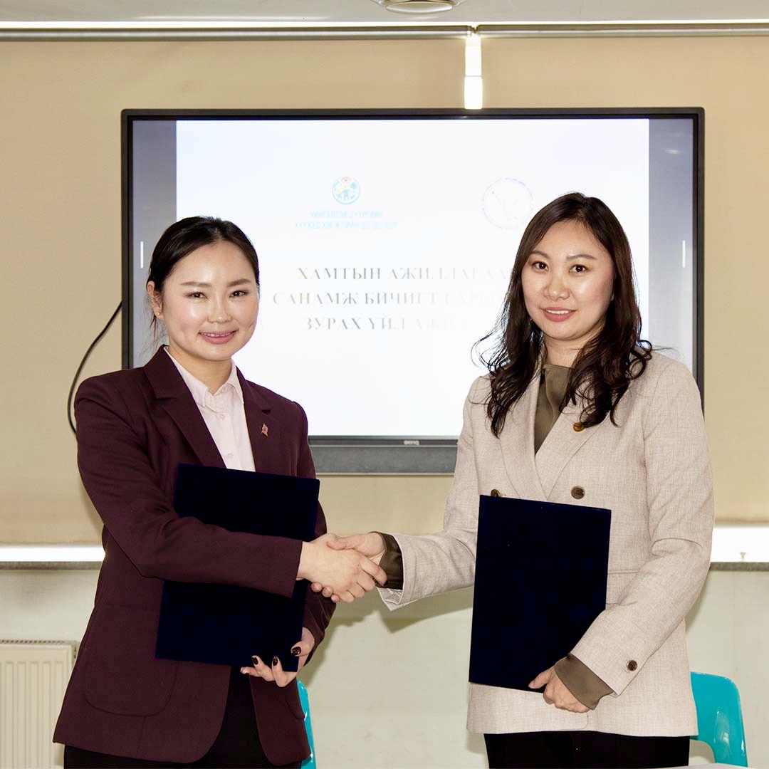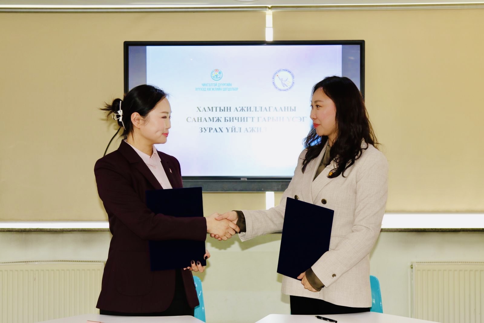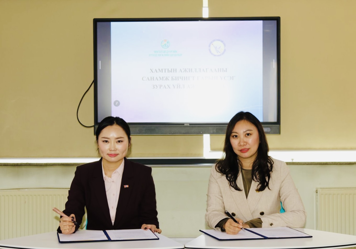 Санамж бичигт Монголын Залуу Эрдэмтдийн Холбооны Ерөнхийлөгч, доктор, профессор Д.Хандмаа, Чингэлтэй дүүргийн “Хүүхэд хөгжлийн цогцолбор” УТҮГ-ын дарга Б.Болортунгалаг нар гарын үсэг зурж, хамтын ажиллагааны эхлэлийг албан ёсоор тавилаа.